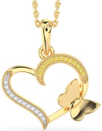 Yellow Diamond White Yellow Gold Heart Butterfly Necklace
