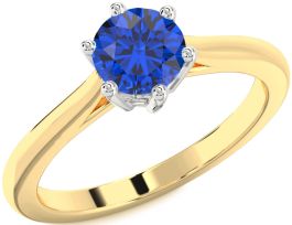 Blue Sapphire Gold Silver Round Solitaire Engagement Ring
