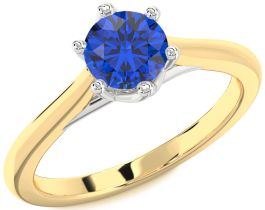 Blue Sapphire Gold Silver Round Solitaire Engagement Ring