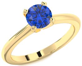 Blue Sapphire Gold Silver Round Solitaire Engagement Ring