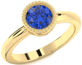 Blue Sapphire Gold Silver Round Vintage Engagement Ring
