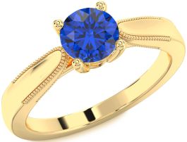 Blue Sapphire Gold Silver Round Vintage Engagement Ring