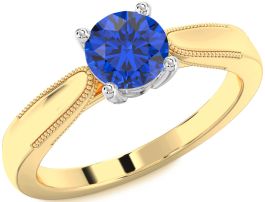 Blue Sapphire Gold Silver Round Vintage Engagement Ring