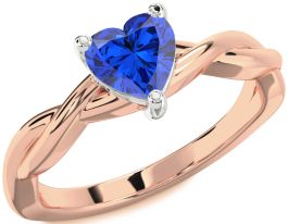 Blue Sapphire Platinum & Rose Gold Heart Knot Solitaire Engagement Ring