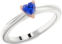 Blue Sapphire Platinum & Rose Gold Heart Promise Ring