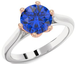 Blue Sapphire Platinum & Rose Gold Round Solitaire Engagement Ring