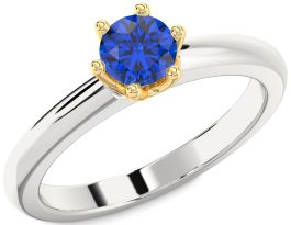 Blue Sapphire Platinum & Yellow Gold Round Solitaire Engagement Ring