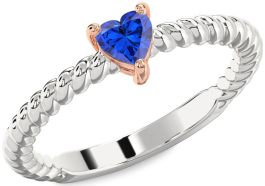 Blue Sapphire Rose Gold Silver Heart Promise Ring