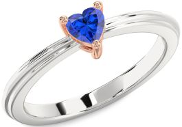Blue Sapphire Rose Gold Silver Heart Promise Ring