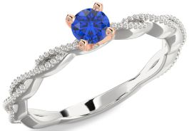 Blue Sapphire Rose Gold Silver Knot Round Promise Ring