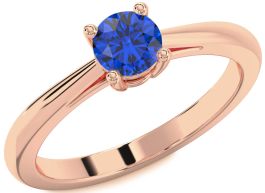 Blue Sapphire Rose Gold Silver Round Solitaire Engagement Ring