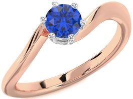 Blue Sapphire Rose Gold Silver Round Solitaire Engagement Ring