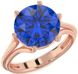 Blue Sapphire Rose Gold Silver Round Solitaire Engagement Ring
