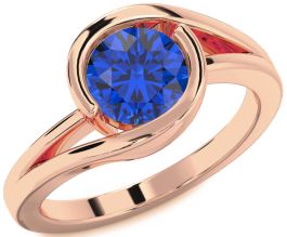 Blue Sapphire Rose Gold Silver Round Solitaire Engagement Ring