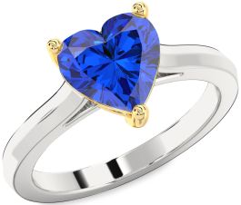 Blue Sapphire Silver & 10K gold Heart Solitaire Engagement Ring