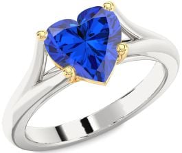Blue Sapphire Silver & 10K gold Heart Solitaire Engagement Ring