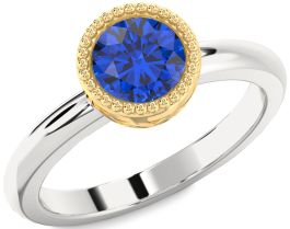Blue Sapphire Silver & 10K gold Round Vintage Engagement Ring
