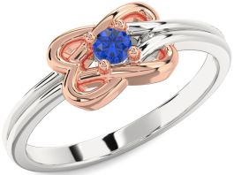 Blue Sapphire Silver & 10K Rose Gold Knot Round Promise Ring