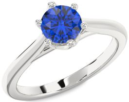 Blue Sapphire Silver Round Solitaire Engagement Ring