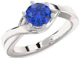 Blue Sapphire Silver Round Solitaire Engagement Ring