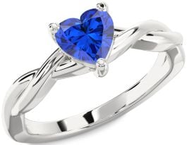 Blue Sapphire White Gold Heart Knot Solitaire Engagement Ring