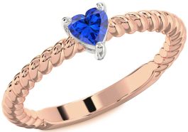 Blue Sapphire White Rose Gold Heart Promise Ring