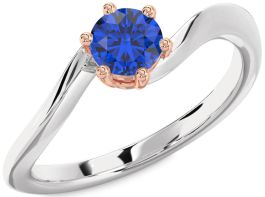 Blue Sapphire White Rose Gold Round Solitaire Engagement Ring