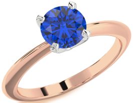 Blue Sapphire White Rose Gold Round Solitaire Engagement Ring