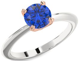 Blue Sapphire White Rose Gold Round Solitaire Engagement Ring