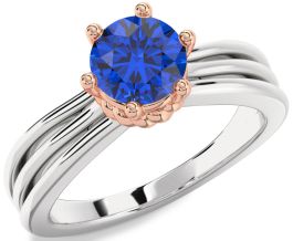 Blue Sapphire White Rose Gold Round Solitaire Engagement Ring