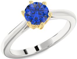 Blue Sapphire White Yellow Gold Round Solitaire Engagement Ring