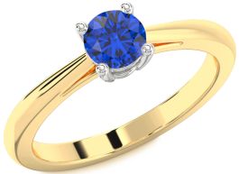 Blue Sapphire White Yellow Gold Round Solitaire Engagement Ring