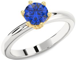 Blue Sapphire White Yellow Gold Round Solitaire Engagement Ring