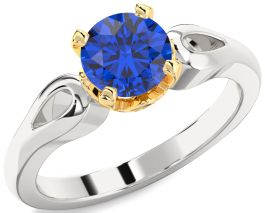 Blue Sapphire White Yellow Gold Round Solitaire Engagement Ring