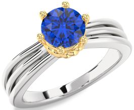 Blue Sapphire White Yellow Gold Round Solitaire Engagement Ring