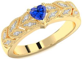 Diamond Blue Sapphire Gold Heart Promise Ring