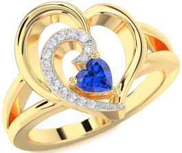 Diamond Blue Sapphire Gold Heart Promise Ring