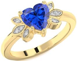 Diamond Blue Sapphire Gold Heart Solitaire Engagement Ring