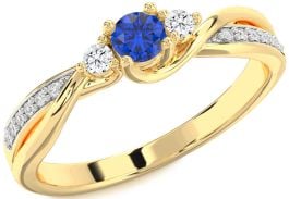 Diamond Blue Sapphire Gold Round Three Stone Engagement Ring