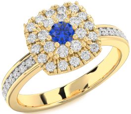 Diamond Blue Sapphire Gold Halo Round Pave Promise Ring