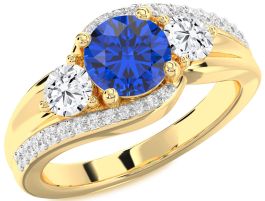 Diamond Blue Sapphire Gold Round Three Stone Engagement Ring