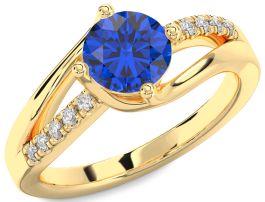 Diamond Blue Sapphire Gold Round Solitaire Engagement Ring