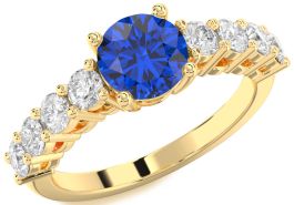 Diamond Blue Sapphire Gold Round Engagement Ring
