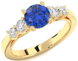Diamond Blue Sapphire Gold Round Engagement Ring