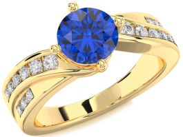 Diamond Blue Sapphire Gold Round Solitaire Engagement Ring