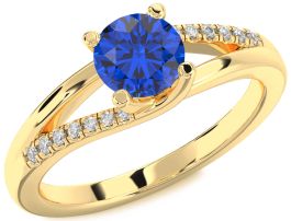 Diamond Blue Sapphire Gold Round Solitaire Engagement Ring