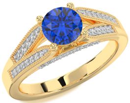 Diamond Blue Sapphire Gold Round Vintage Engagement Ring