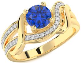 Diamond Blue Sapphire Gold Round Solitaire Engagement Ring