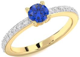 Diamond Blue Sapphire Gold Round Solitaire Pave Engagement Ring
