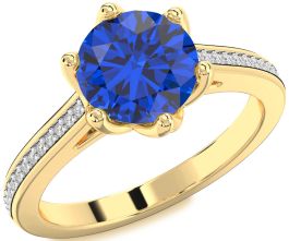 Diamond Blue Sapphire Gold Round Solitaire Pave Engagement Ring
